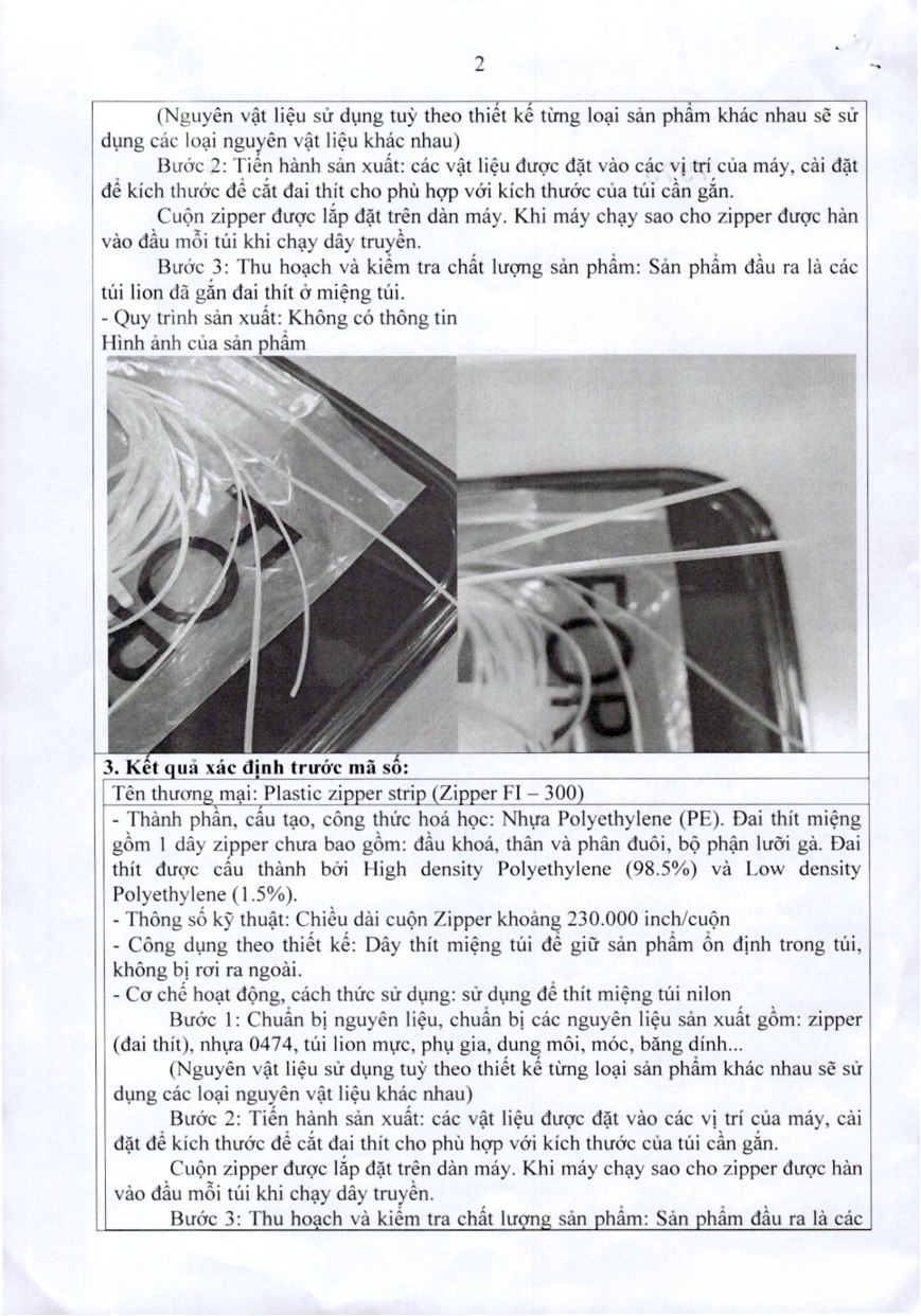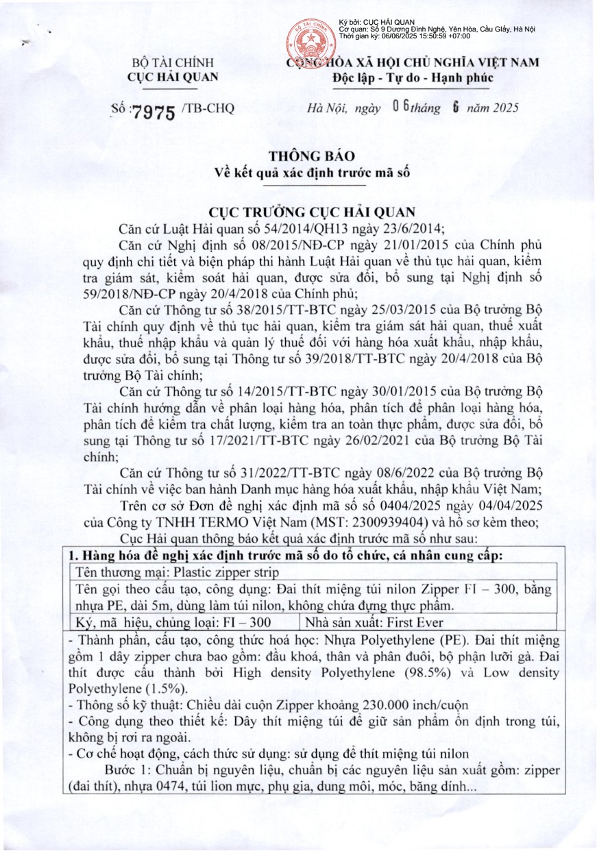 CÔNG VĂN 7975/TB-CHQ PHÂN LOẠI HS CODE MẶT HÀNG DÂY THÍT MIỆNG TÚI BẰNG NHỰA (PLASTIC ZIPPER STRIP)