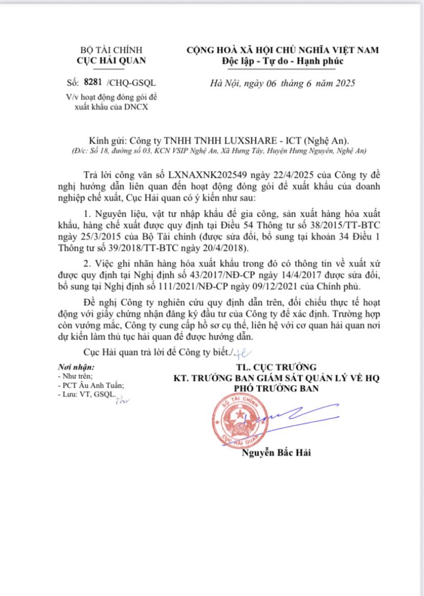 27/08/2025 By Admin Facebook Twitter Google + CÔNG VĂN SỐ: 8281/CHQ-GSQL VỀ VIỆC HOẠT ĐỘNG ĐÓNG GÓI ĐỂ XUẤT KHẨU CỦA DNCX CÔNG VĂN Số: 8281/CHQ-GSQL V/v hoạt động đóng gói để xuất khẩu của DNCX Bài viết liên quan VẬN HÀNH CẢNG CẠN TÂN CẢNG MỘC BÀI: THÚC ĐẨY THƯƠNG MẠI VIỆT NAM – CAMPUCHIA CANADA KẾT LUẬN DOANH NGHIỆP XUẤT KHẨU DÂY ĐAI THÉP VIỆT NAM KHÔNG BÁN PHÁ GIÁ XUẤT KHẨU CỦA VIỆT NAM TĂNG MẠNH NHƯNG CÒN NHIỀU THÁCH THỨC